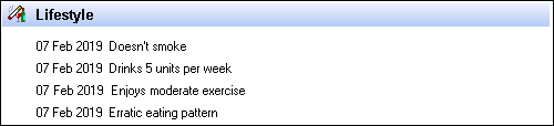 If the patient has no relevant data recorded, No Lifestyle information displays:
