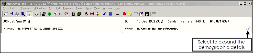 If the patient has no face-to-face consultations, No face to face consultation recorded displays.