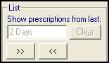 Above the prescription list is a Show prescriptions from last date range option, this defaults to 2 days in the Active Simple tab. Update if required: