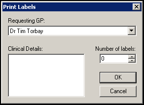 Requesting GP - Defaults to the requesting or Registered GP, update if required. This is only available if included in your specimen label design.