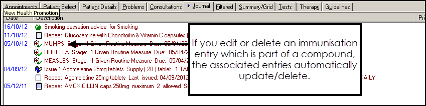 From Consultation Manager, select the patient required and locate the immunisation to delete.