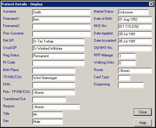 Note - You cannot update any details from these screens, to edit the details you must access the patient's registration record, see Adding and Maintaining Patient Addresses in the Registration Help Centre for details.