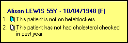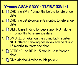 Cancel - This puts a line through the reminder, double clicking on the reminder line has the same effect. All reminders can be cancelled on an individual patient basis, cancelled audit reminders remain until either the patient is removed from the group, the reminder is reinstated or reminders regenerated.