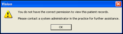 If the patient you select is marked as a Sensitive Patient and you do not have permission to access them, a warning message displays, select OK to accept:
