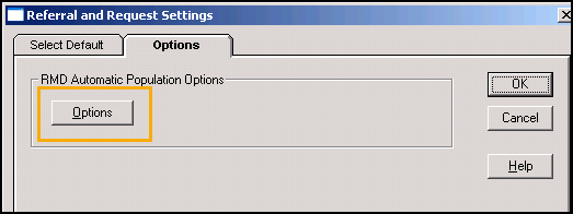 - Select List - Default Referrals/Requests, select the Options tab and under RMD Automatic Population Options, select Options: