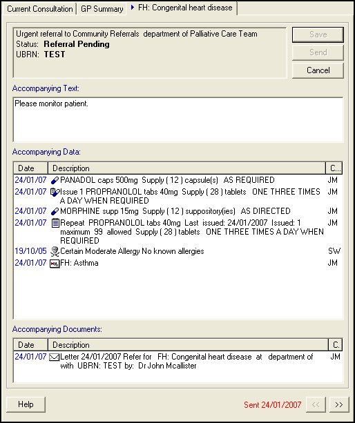 An RMD displays as an Electronic Letter on a patient record, you can select the entry to display the RMD at the bottom of the screen or right click on it and select Edit: