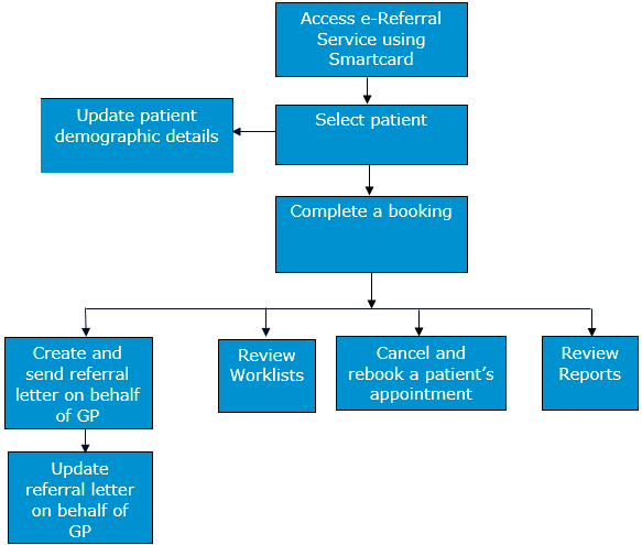 - The GP must be a "referring clinician" with authority to refer with business function of Initiate Referral set up. If the GP makes a referral but prefers that the receptionist completes the booking at the reception desk, then that receptionist must be authorised to login and have a business function of Proxy initial referral and Perform clinical booking management service.