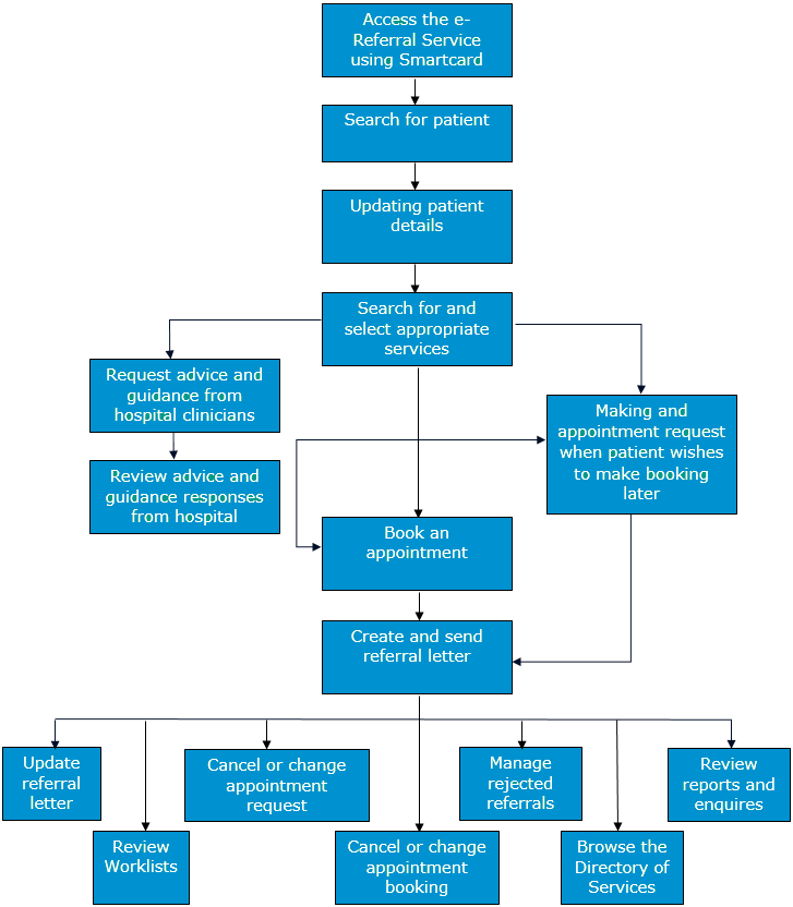 The e-Referral Service enables a GP to refer or book a patient to a service commissioned by their Integrated Care Board (ICB), and to send an electronic referral letter with that referral or booking.