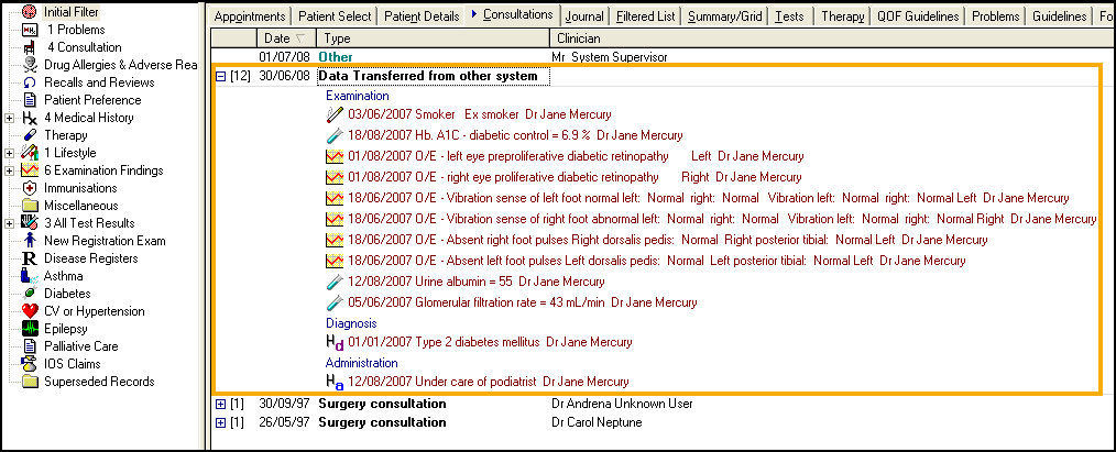 Amended data sent via SCI-DC replaces the original transmitted entry in Consultation Manager and as such does not display differently in the journal. You can look at the audit trail of an entry to see the history of amendments, right click on it and select Audit Trail. Previous changes are highlighted in red.