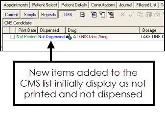 Chronic Medication Service (CMS) items can be added from either the CMS or the Scripts tab in Consultation Manager - Therapy.