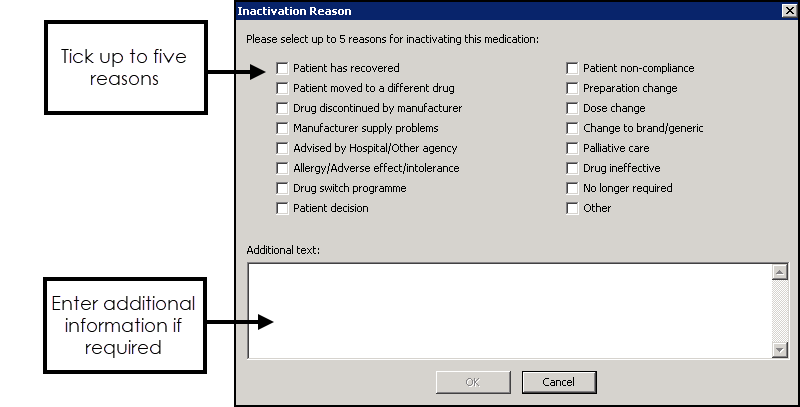 Tick up to five reasons for inactivation in the correct order, most appropriate first.