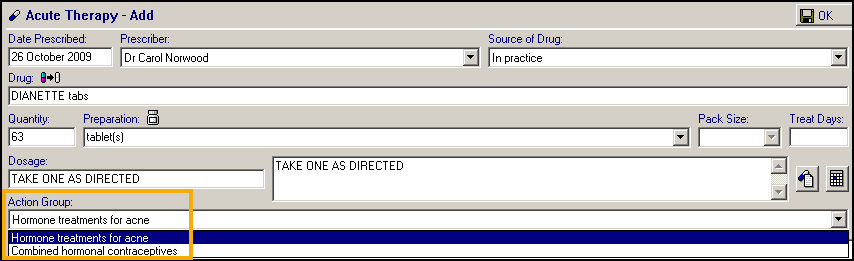 It is therefore important that you select the correct drug class in Action Group: