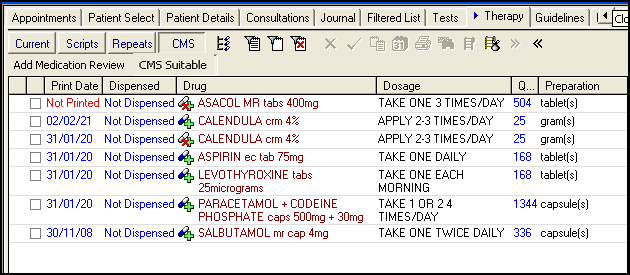 is de-pressed. - Inactive CMS (Serial Prescribing) items display with CMS Inactive