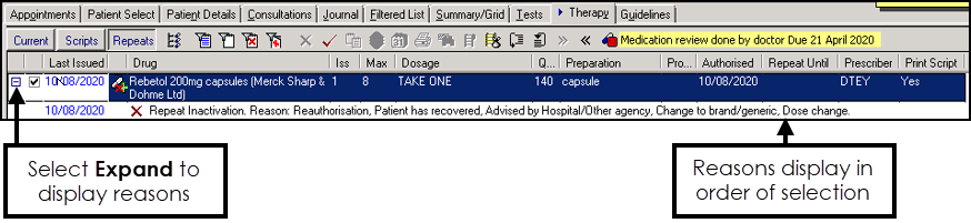 You can view inactive/cancelled CMS (Serial Prescribing) items from Consultation Manager - Therapy - CMS:
