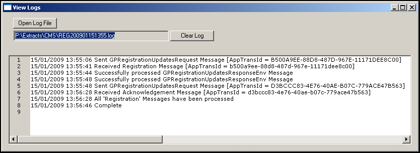 From the CMS Message Collector, you can view an audit trail of previous message collection processes for each message type. This functionality is particularly useful when trying to determine why an error has occurred and is used by the helpdesk.
