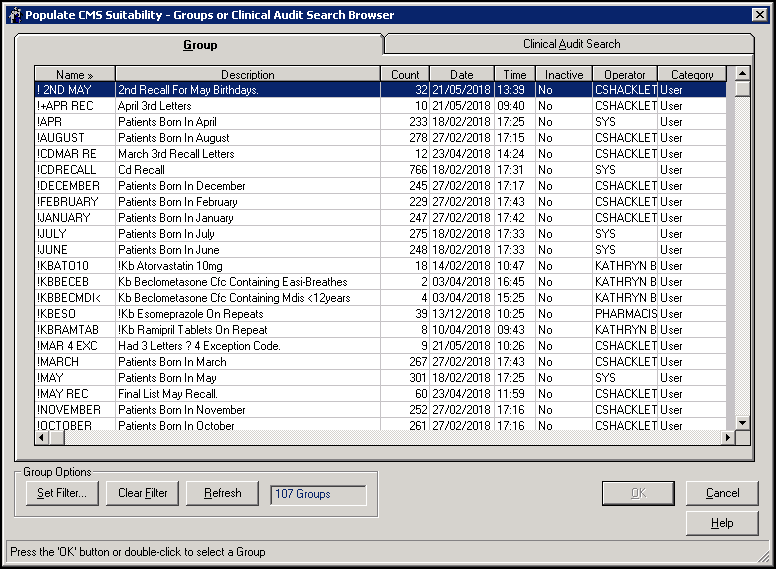 You might like to review your chronic disease registers for patients potentially suitable for CMS. You can use the Clinical Audit audit groups to identify chronic disease patients and merge the groups together to create a definitive list of all chronic patients.