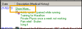The event Date displays in the left-hand column and the Clinician in the right-hand column. These only appear when their value changes from the item above, but always appear for the current item in the list.