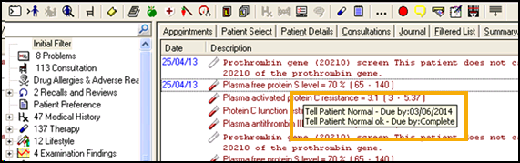 There is a Test Result Tool Tip option available from the Journal, Filtered and Problems views withinConsultation Manager. If you opt to switch the option on, when hovering your mouse pointer over a test result, a tool tip displays showing any Actions and their completion status associated with the result. This option is disabled by default but you can enable it from the Consultation Manager settings screen, see Consultation Manager Setup - General for details.