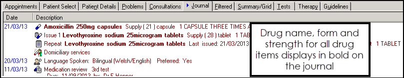 Acute prescriptions and Repeat Issues - One off prescriptions and any issues of repeat prescriptions are grouped under Therapy - Scripts or Current
