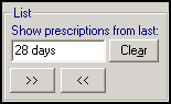 - Select to add a note to the prescriber, for example, if you are an administrative member of staff adding items to the patient record which need signing. Typically, this holds details of a requested change to the prescribed items. This uses the existing Vision 3 Reminders system and is shown alongside other reminders in the usual way. - Show prescriptions from last - Above the prescription list is a new date range filter, so you can optionally list scripts within a recent date range on a tab, for example, the Recent tab, if you want to reprint an item. Each tab has a different period displayed: Active = 2 days, ie today and yesterday; Recent tab = last 28 days; All = last 6 months. You can change the period by typing abbreviations such as 10d (10 days), 4w (4 weeks), 6m (6 months) or 1y (one year) (note, it only displays items from when Prescription Manager was switched on, if this was sooner).
