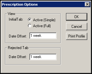 - Active (Full) - Select to set the initial tab in Prescription Manager.