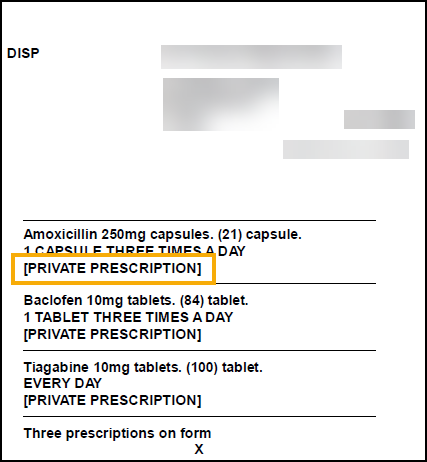 Private prescriptions print on the right hand side of a script and [PRIVATE PRESCRIPTION] prints after each item:
