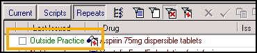 Medication prescribed outside of your practice displays with Outside Practice