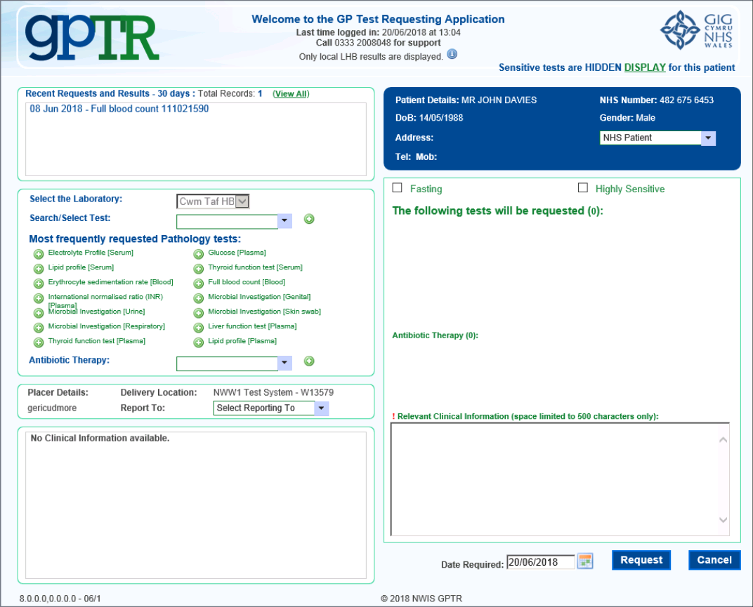 You will be notified when this service is enabled at your practice, once it is switched on, the first service to use this feature is test requesting.