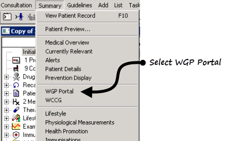 , select your patient in the usual way. - From Summary, select WGP Portal: