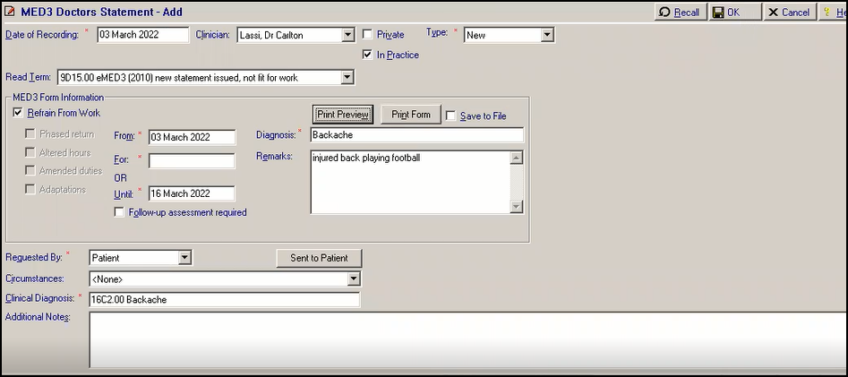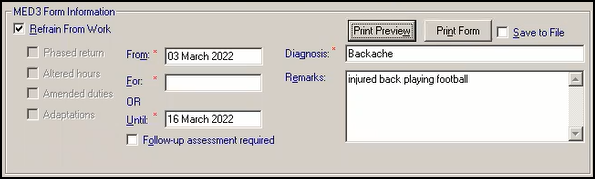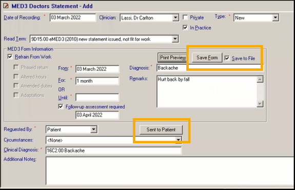 The MED3 Doctor’s Statement form consists of four sections which should be completed: