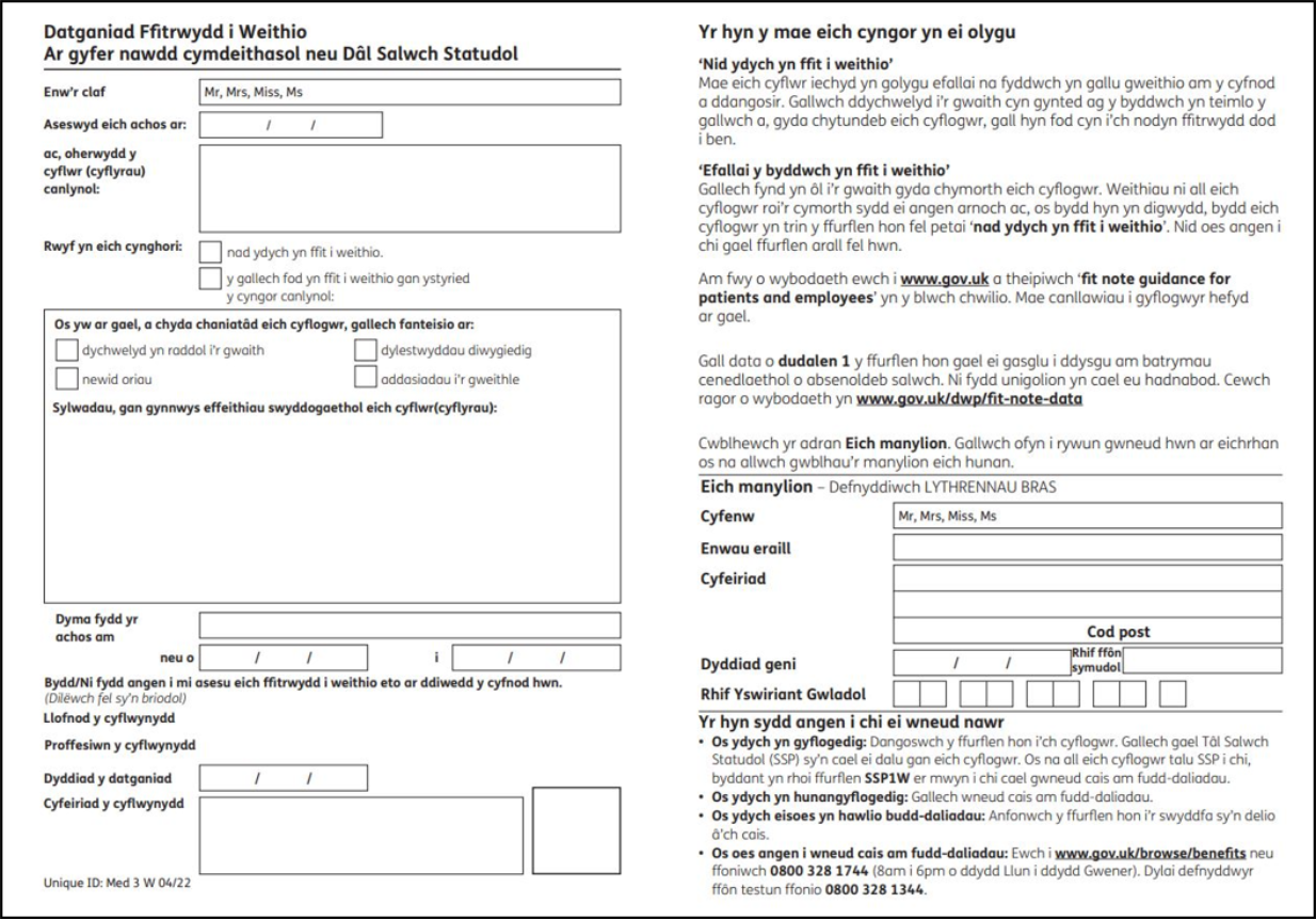 MED3 Doctor's Statement - Welsh