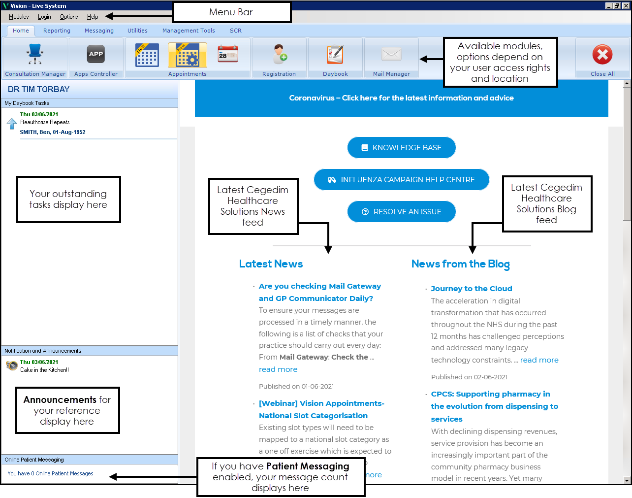- The Vision 3 front screen has been updated with our new rebranded Learning and Support and News from the Blog feeds: