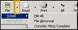 Tick - Highlight a message and select Tick to tick it, you can also select a message manually. Select the down arrow to select Tick All or Untick All. Tick All ticks all messages and the File menu option of Ticked then allows various functions.