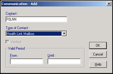 - Contact Number - For TP/HB/CSAs with which you have an electronic link enter a Contact Number of Health Link Mailbox, this is a five character alphanumeric code consisting of the TP cipher followed by 1, 2 or 3 zeros, for example, F0LDS for Leeds.