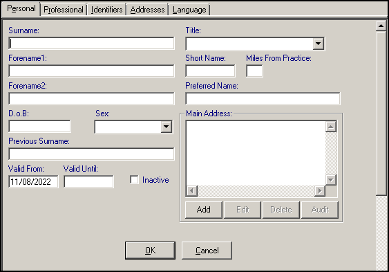 - Dates Joined and Date Left Practice - Enter the date the staff member joined the practice. Once a GP has retired, left or died, enter a date In Date Left Practice, but leave blank until then.