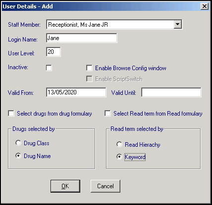 - Inactive - Tick to indicate the doctor is no longer active, and no longer appears on selection lists of active users. Any historical records still bear the initials of a former GP for audit purposes. For example, a GP registrar leaving the practice should be made Inactive, see Inactivating a User for details.