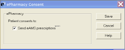 - On the ePharmacy Consent screen, the box Send eAMS prescriptions is ticked if the patient consents to electronic prescriptions.