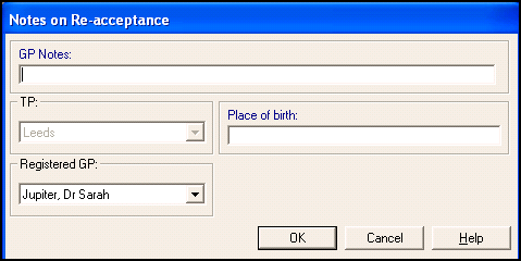 For practices in Scotland, if the deduction is a Removal to new TP/HB/CSA you see the Notes on Re-acceptance screen when you re-accept the patient: