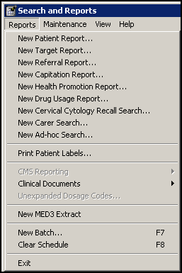 • Cervical Cytology Recall Search - Finds patients due for smear recalls, and excludes those patients not eligible. Additional Cytology searches are included in Clinical Audit.