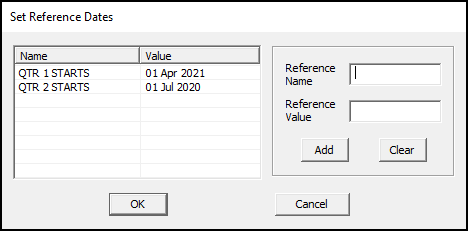 The Set Reference Dates screen displays, existing reference dates display in the list: