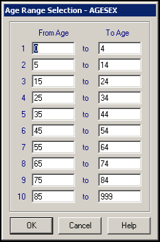 - The relevant Age Range Selection screen displays. Complete as required, remembering not to overlap the ranges: