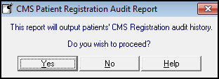 - The CMS Patient Registration Audit Report screen displays, select Yes to continue: