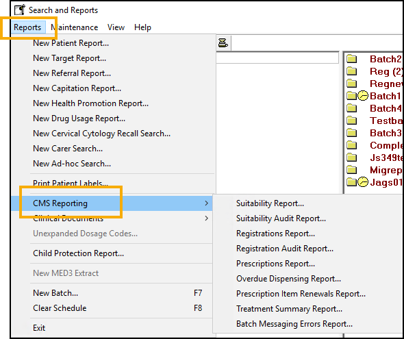 To run a CMS report, from Search and Reports, select Reports - CMS Reporting and then select the report you require: