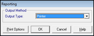 At the Reports screen, after defining the criteria, select Print to generate the report. For some reports, the ReportingOutput Method options displays: