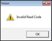 If you make an entry in Read code which is not a valid code, the 'Invalid Read Code' error message displays: