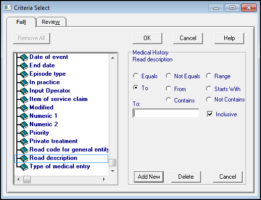 - Range - Useful for a range of patients, for example, surnames Aa - Cz