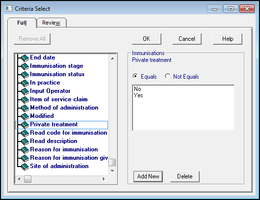 Yes/No - Some criteria have Yes or No selections, for example, private treatment: