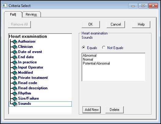 Normal/Abnormal/Potential Abnormal - Selection is available in some clinical entities, such as Heart Examination - Sounds: