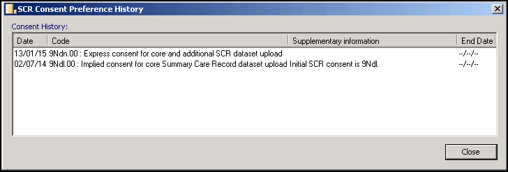 . - The Patient Consent Preference - Summary Care Record screen displays: