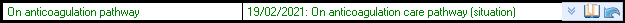 This area of the screen shows you when the patient was placed on the Anticoagulation Pathway or you can record the fact that the patient is part of the Anticoagulation Pathway.